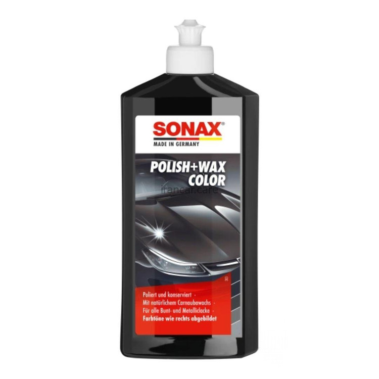 پولیش واکس مشکی سوناکس SONAX، مناسب برای انواع رنگ های متالیک، مشکی و تیره ی اتومبیل حجم 500 میلی لیتر
