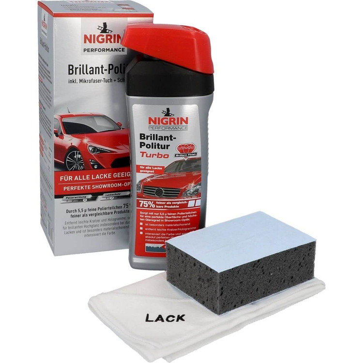 پولیش واکس نیگرین NIGRIN، اصل آلمان، مدل برلیانت، به همراه پک دستمال نانو و پد پولیش دستی، حجم 500 میلی لیتر