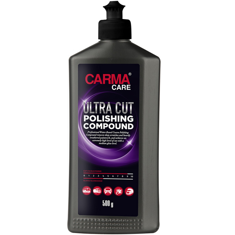 پولیش حرفه ای خیلی زبر کارماکر با قابلیت پرداخت بسیار بالا می تواند قسمت های اکسیدشده و زنگ زده، خط و خش و خراش های عمیق تا حد سمباده P 1000 را در کوتاهترین زمان ممکن و بدون آسیب رساندن به سطح حذف نماید و کمترین کدورت را از خود باقی می گذارد. این محصول مناسب برای دیتیلینگ حرفه ای بدنه خودرو و پولیش کاری کلیه سطوح رنگ شده می باشد.