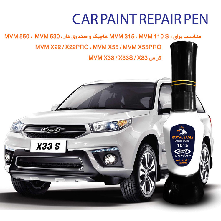 قلم خشگیر بدنه ی خودرو رویال ایگل رنگ سفید ام وی ام MVM کد 101S حجم ۱۵ میلی لیتر